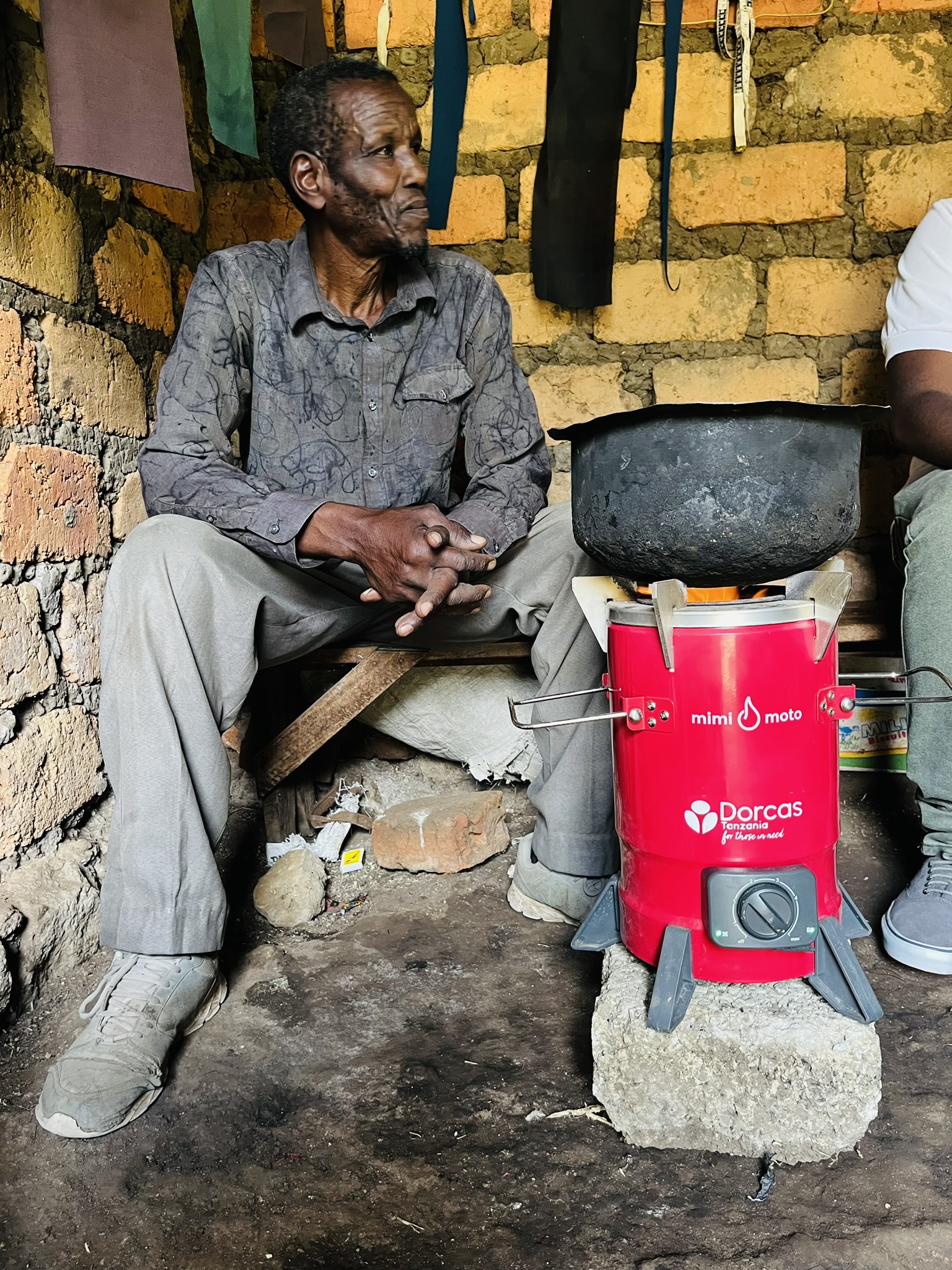 Christoffer is kleermaker en woont alleen. Zijn vrouw is ziek en woont daarom ergens anders. ‘Koken op hout geeft veel rook. Ik kreeg altijd traanogen en werd snotterig tijdens het eten koken’, legt Christoffer uit. De dorpsoudsten wezen hem op de clean cooking stove uit het project van Dorcas. De stove is een rode brander met één pit, die pellets (houtkorrels) gebruikt als brandstof. Er komt geen rook van de stove en in plaats van open vuur op de grond zit het vuur veilig in de brander.