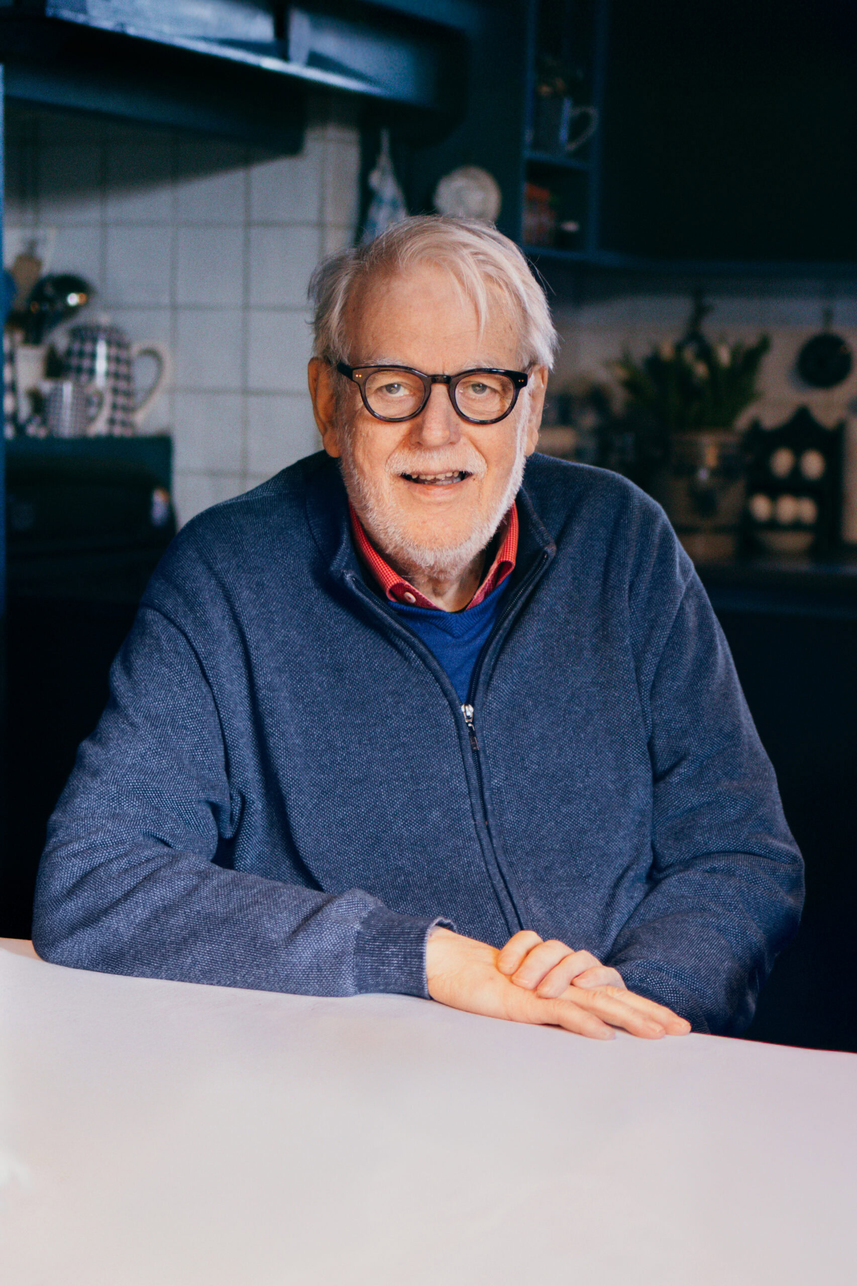 Dirk Jan Groot en Janneke bekijken een fotoboek op aan de tafel.