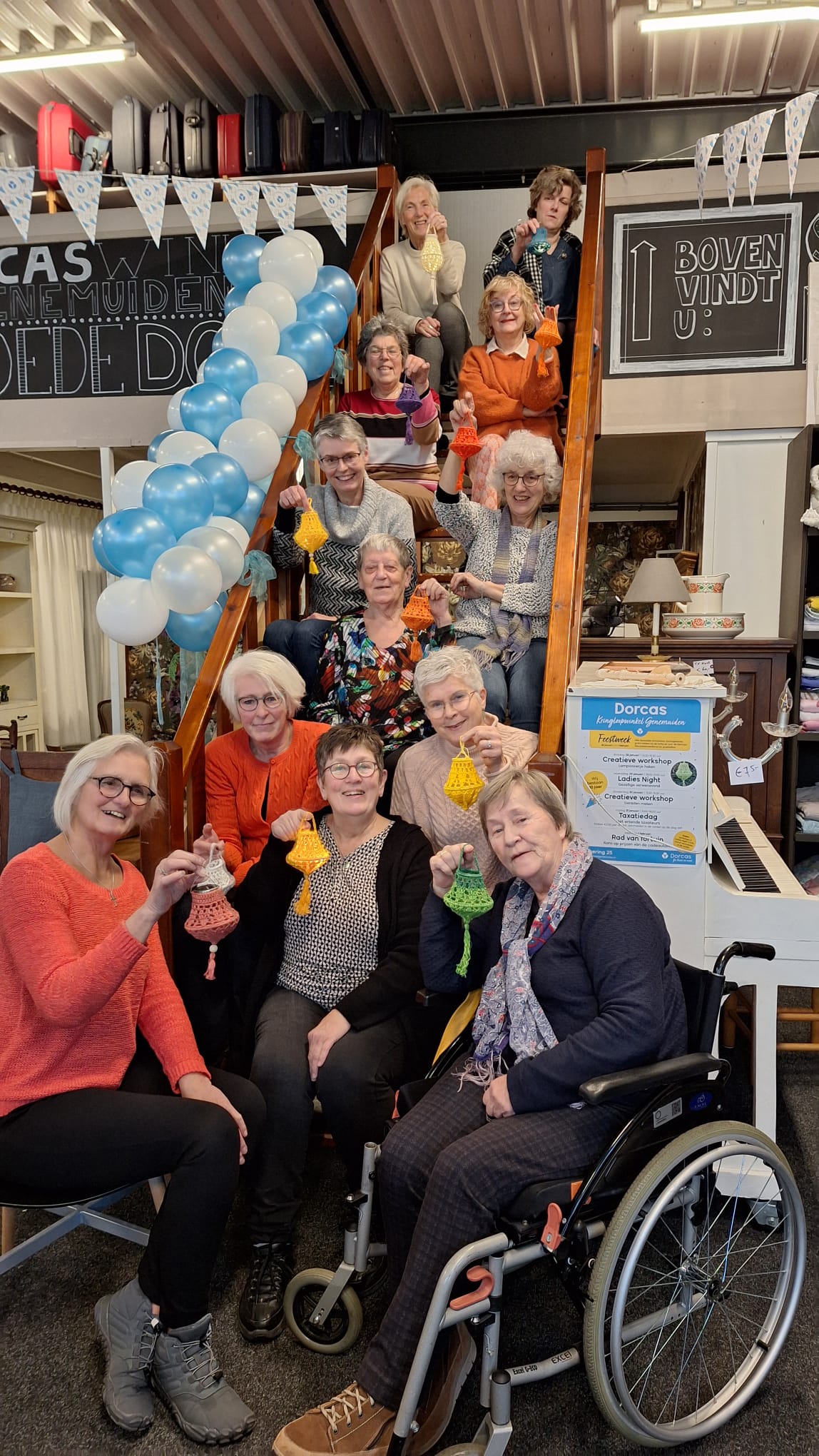 Het 10-jarig bestaan is zowel met de vrijwilligers als met de klanten gevierd. Marja: ‘We zijn met alle vrijwilligers gaan bowlen met als afsluiting een heerlijk buffet. Dit was erg gezellig. Degenen die al vanaf de opstart of daarvoor actief waren in de Dorcas-winkel hebben allemaal een bloemetje uitgereikt gekregen van de burgemeester, die tien jaar geleden de winkel geopend had. Een leuke verrassing!’