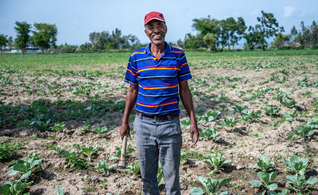 De 52-jarige Goneso uit Ethiopië had jarenlang nauwelijks genoeg eten voor zijn gezin. Dankzij een training, goede zaden én een irrigatiesysteem is de oogst veel beter en heeft zijn gezin wel genoeg te eten.