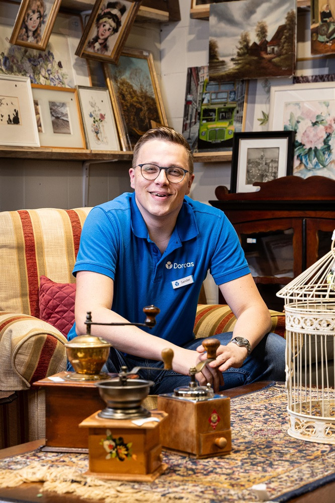 ‘Ik werk bij de technische dienst van Dorcas,’ vertelt Sander met enthousiasme. ‘Alles met een stekker komt bij ons langs. We maken het schoon, testen het en repareren wat mogelijk is. Daarna krijgt het een prijs en gaat het de winkel in.’
